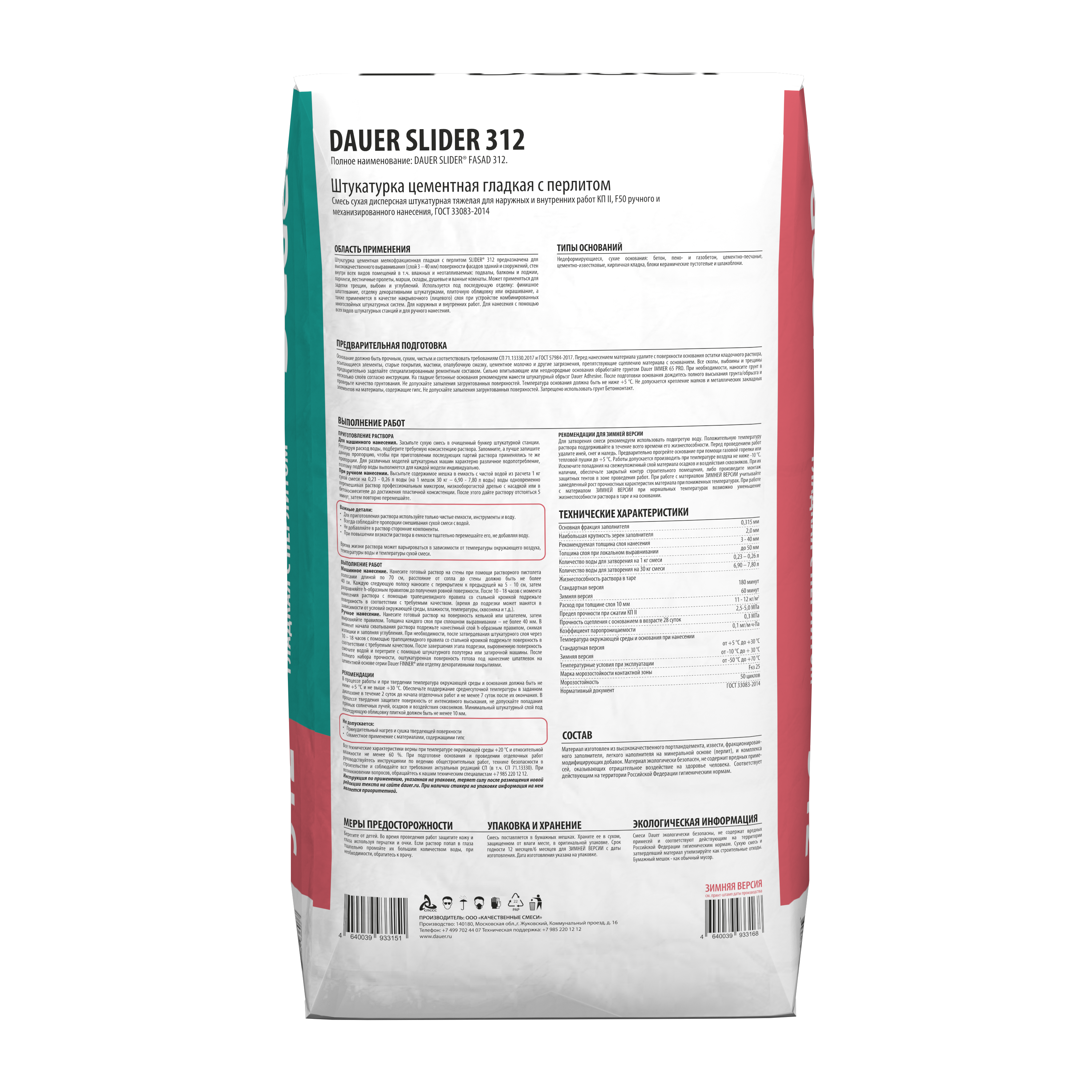 SLIDER FASAD 312 Штукатурка цементная мелкофракционная гладкая 30 кг